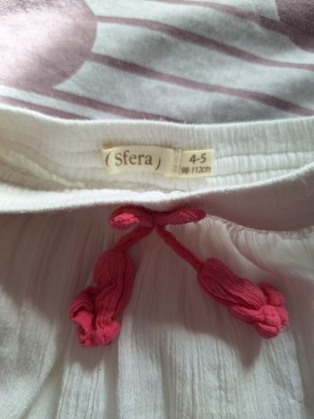 Falda blanca de la marca Sfera. - Talla 4-5 años (98-112 cm). - Detalle de dos pompones rosas en la parte delantera.