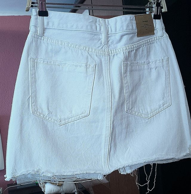 Detalles del productoFalda blanca vaquera con rotos stradivarius talla 38 Largo 40 cms.