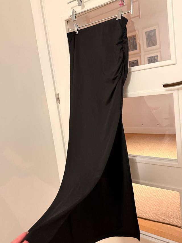Falda tubo negra con abertura lateral. Ceñida.