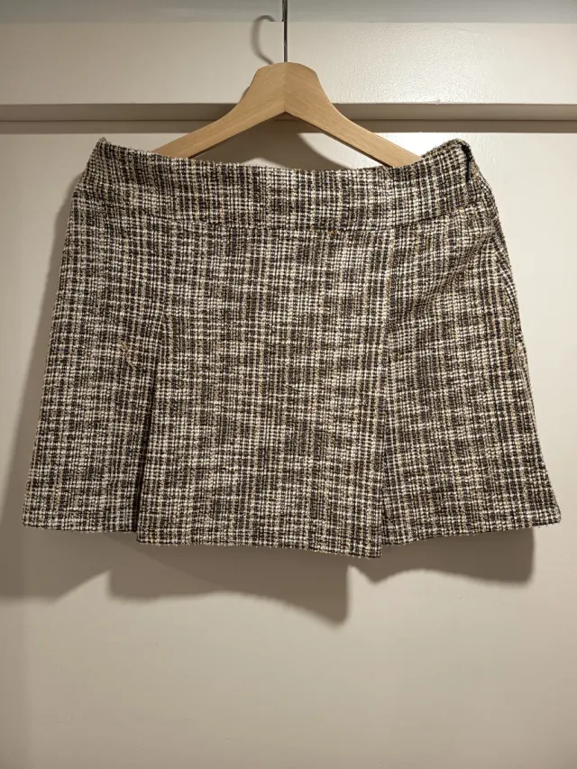 Falda de Mango nueva con etiqueta con un bonito estampado jaspeado en tonos beige y marrón. Es una prenda versátil y elegante.