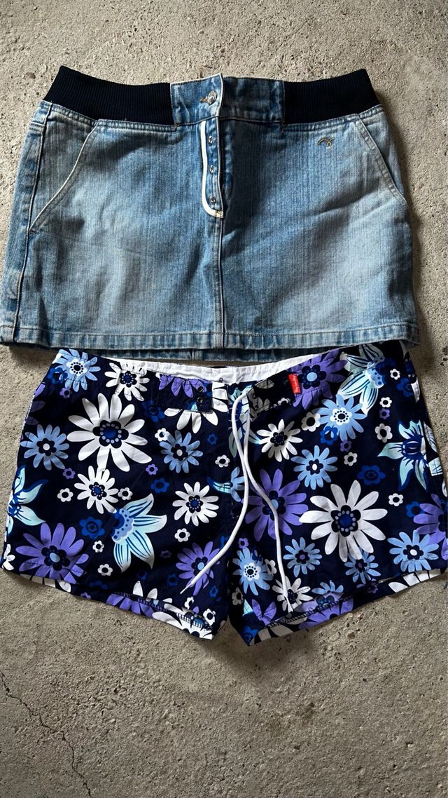 Falda vaquera + short flores