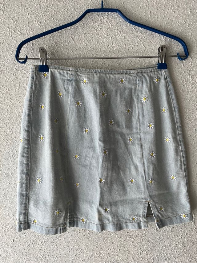 Falda vaquera con un divertido estampado de margaritas.