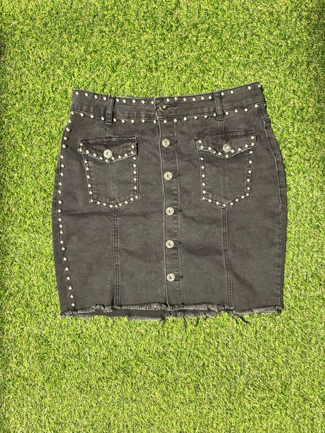 Falda vaquera negra con tachuelas