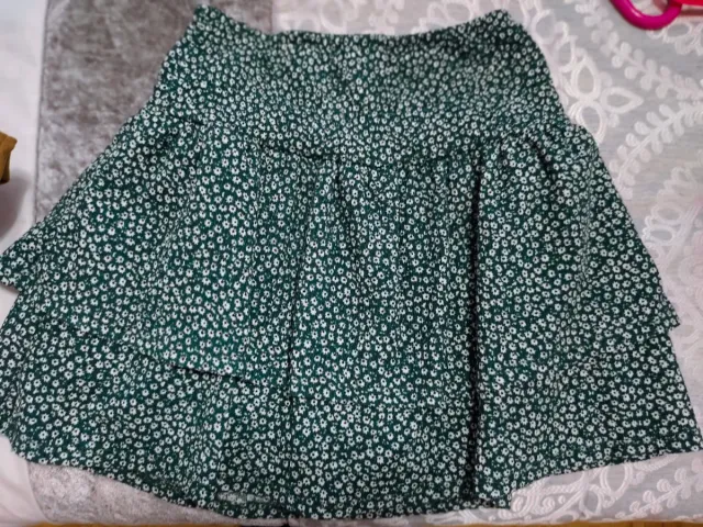 Falda verde con short con estampado floral blanco