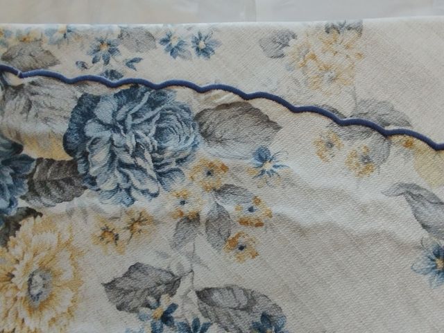 Detalles del productoFaldas para mesa camilla de 100 centímetros (diámetro). Fondo beige con flores de varias tonalidades en azul. Muy bonitas y muy buena calidad. Algodón y poliéster. Todo tiempo. Medidas del producto