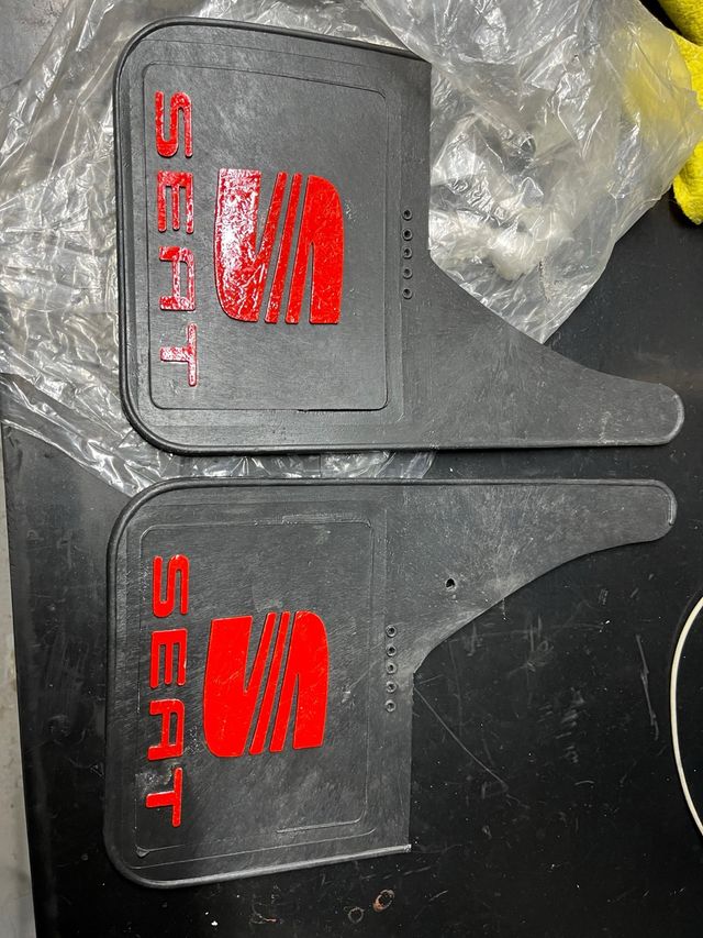 Detalles del productoJuego de dos faldillas para SEAT. Son de color negro con el logo de la marca en rojo. modelos clásicos