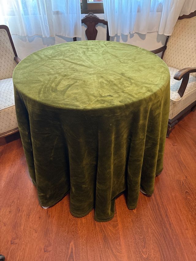 Detalles del productoPreciosa funda para mesa camilla de 80 cm de diámetro, de color verde. Es de un tejido aterciopelado y tiene un diseño sencillo y elegante.