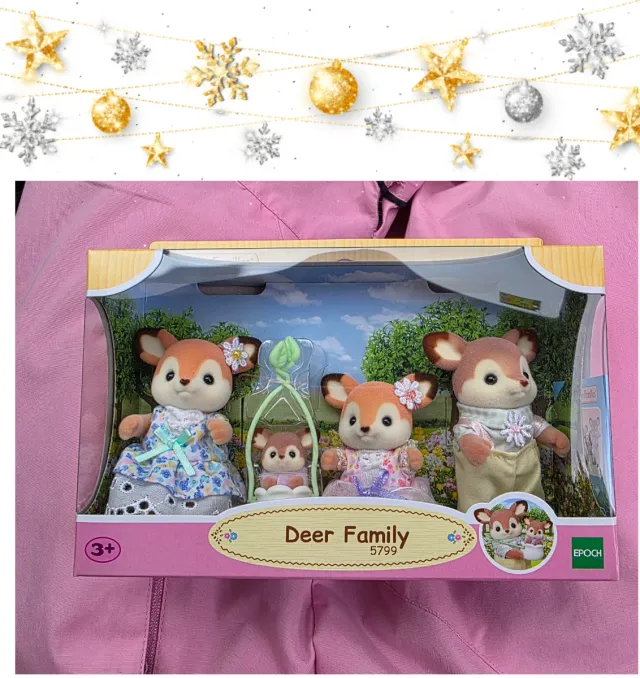 Set de la Familia Ciervos de Sylvanian Families, modelo 5799. - Incluye cuatro figuras de ciervos. - Figuras con ropa detallada. - Accesorios incluidos.