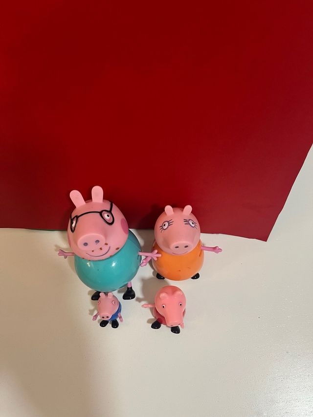 Set de figuras de la familia Peppa Pig. Incluye a Papá Pig, Mamá Pig, Peppa y George. - Figuras de plástico. - Colores vivos.