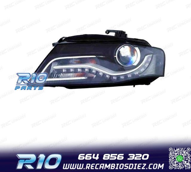 Detalles del productoMóvil: 664 856 320 - Referencia: RLC012633. FARO IZQ XENON AUDI A4 08-11 Lado: Izquierdo Válido para: Audi A4 (2008-2011) Especificaciones: Preparado para sistema de regulación eléctrico. Incluye motores eléctricos para regulación de los faros. Fondo Negro Luz Dia Tipo Bombilla: Xenon + LED Posibilidad de envío de un kit de bombillas led Xenon+LED o xenón. No compatible con Allroad. Homolación Europea. El artículo incluye el E-Mark (Certificado Europeo) grabado en el cristal. Montaje. Instalación sencilla, en los anclajes originales del vehículo, sin necesidad de modificación e