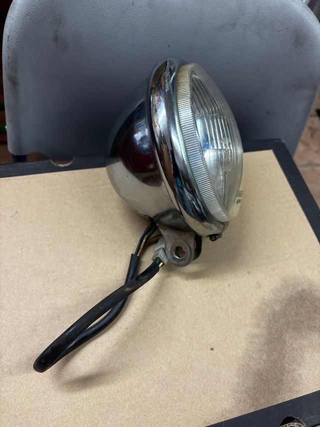 Faro delantero para moto Kimco Zing 125. Pieza de repuesto con acabado cromado. - Diseño clásico. - Lente de cristal. - Incluye cableado.
