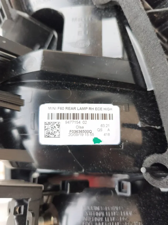 Faro trasero derecho para Mini F60, modelo ECE HIGH. - Número de pieza: 9477154 02 - Código: F03636500Q - Fecha de fabricación: 20/09/19