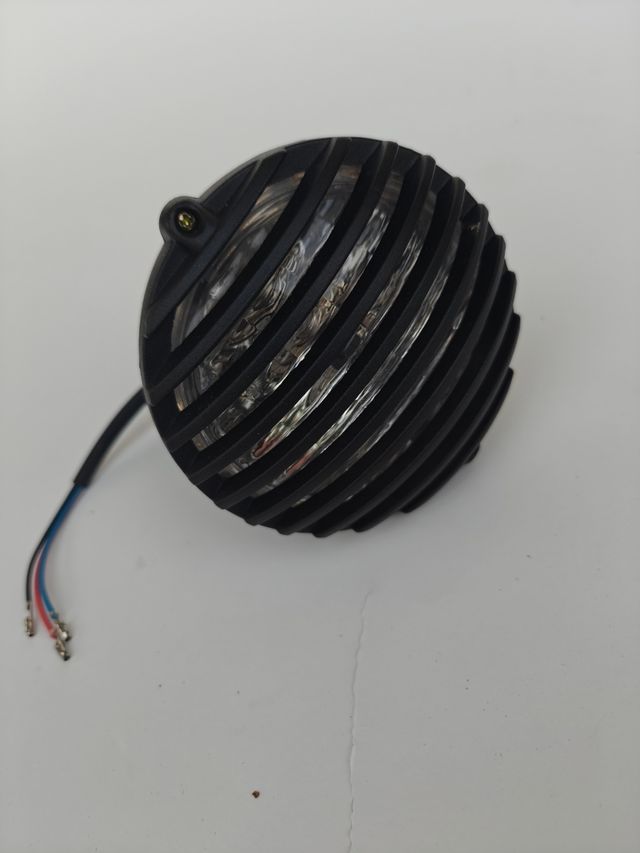 Faro delantero de moto en perfecto estado. Ideal para personalizar tu moto. - Diseño elegante y moderno. - Incluye cableado para fácil instalación. - Color negro.