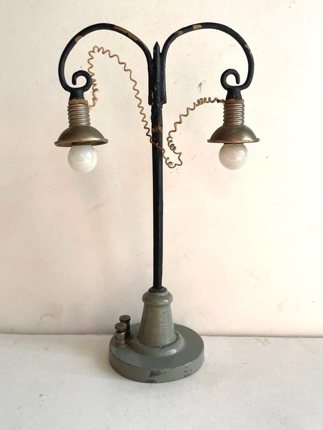 Farola antigua de estación de tren. Modelismo, escala 0. Antigua. 16 centímetros de altura. Pintura algo descascarillada. Sin probar.