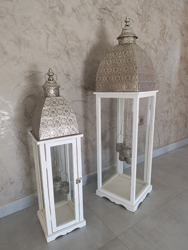 Detalles del productoFarolillo uno más pequeño que el otro ,para información de medida escribeme , son grandes . De color plata . Tiene la pintura un poco desgastada como se aprecia en la foto . Pero está nuevo .
