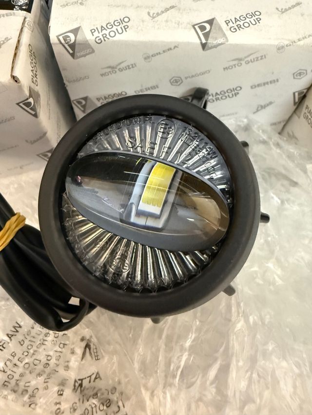 Detalles del productoFaros antiniebla LED para motocicleta, compatibles con marcas del Piaggio Group.