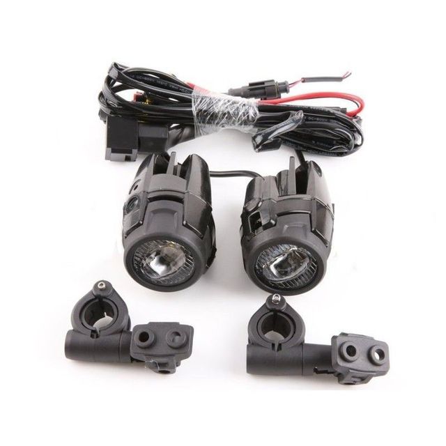 Faros auxiliares Puig 3489N. Juego de proyectores antiniebla Puig 3489N con diseño universal para adaptar a la mayoría de defensas del mercado (entre 20,5 y 25 mm). Incorporan tecnología de LED de bajo consumo eléctrico y cuentan con una resistente carcasa en aluminio pintada de negro (diseñada para disipar el calor). Dotados de fusible y de cableado para la conexión directa a la batería. También cuentan con un interruptor impermeable que se instala en el manillar.