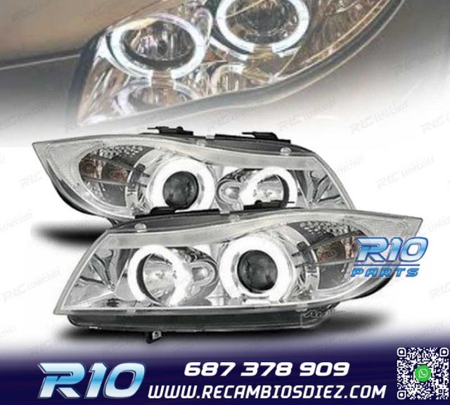FAROS BMW E90 91 05-08 OJOS ANGEL FONDO CROMO
