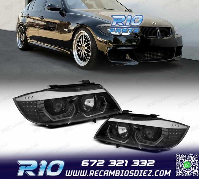 FAROS BMW E90 E91 05-08 OJOS ANGEL 3D FONDO NEGRO