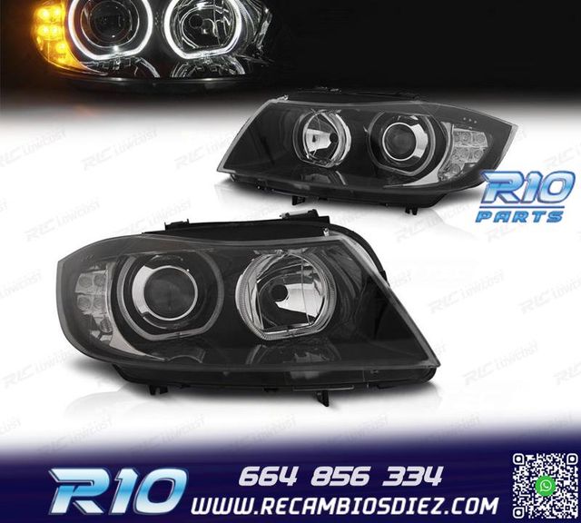 FAROS BMW E90 E91 05-12 OJOS ANGEL INTERMITENTE LED FONDO NE
