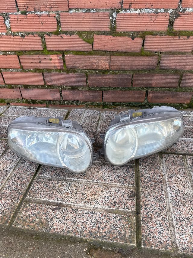 Juego de faros delanteros originales para Alfa Romeo 147. - Incluye ambos faros, izquierdo y derecho. - Diseño transparente para una iluminación clara.