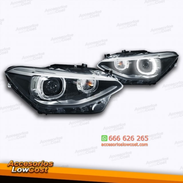 Detalles del productoREF: AL020023 Faros delanteros XENÓN ojos de angel para BMW Serie 1 F20 / F21 2011-> - Preparado para sistema de regulación eléctrico. - Tipo Bombilla: D1S - Homologación e-mark (certificado europeo) grabado en el cristal. - Dos años de garantía 100%. FAROS DELANTEROS BI-XENÓN OJOS DE ANGEL BMW SERIE 1 F20/21