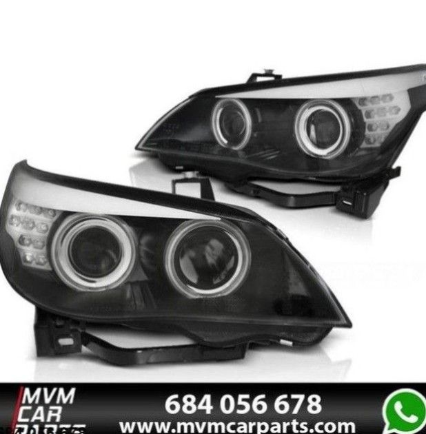 Detalles del productoPareja de faros delanteros con Angel Eyes para BMW Serie 5 E60 Sedan y E61 Touring de 2003 a 2008