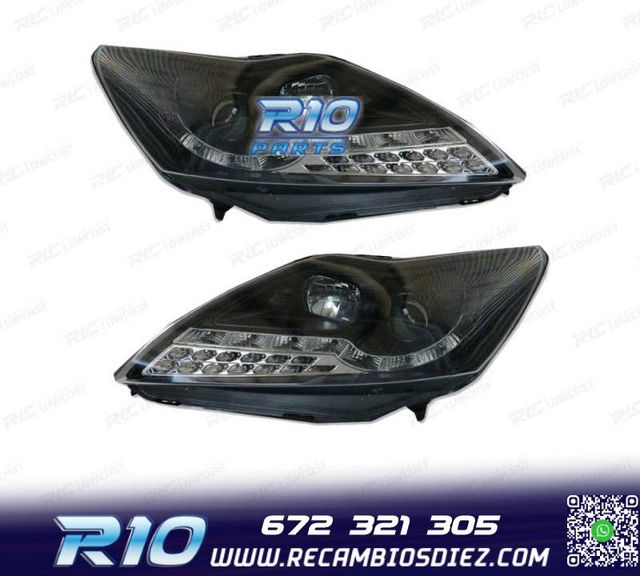 FAROS FORD FOCUS 08- LUZ DIURNA LED NEGRO