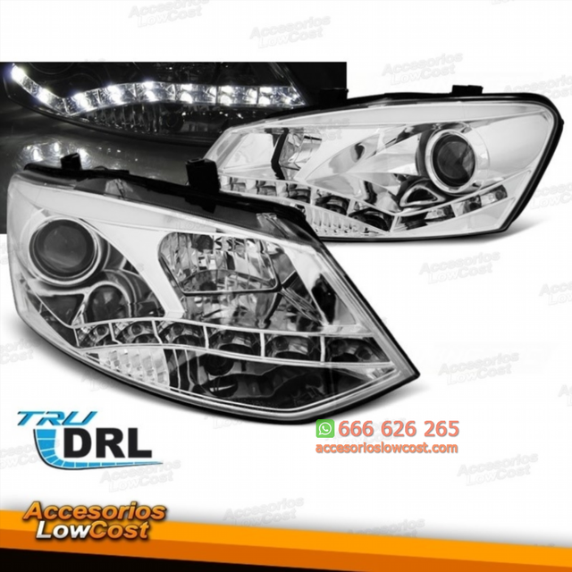 FAROS LUZ DIURNA LED PARA VW POLO, 10-14. CRISTAL