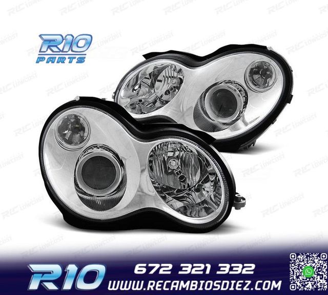 FAROS MERCEDES CLASE C SPORT COUPE C203 01-04 FONDO CROMO