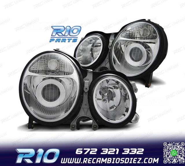 FAROS MERCEDES CLASE E W210 99-02 FONDO CROMO