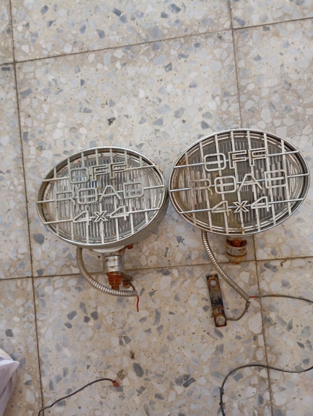 Detalles del productoPareja de faros antiniebla o de largo alcance .Off-Road 4x4. Se encuentran en buen estado, aunque muestran señales de uso.