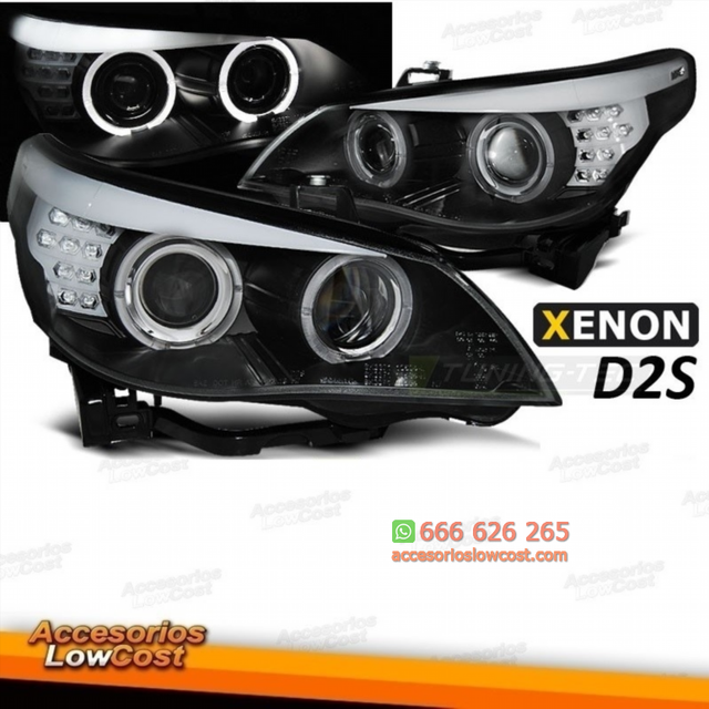 Detalles del productoREF: AL020596 FAROS DELANTEROS ANGEL EYES BMW SERIE 5 E60 / E61 03-04 LED FONDO NEGRÖ Años: 03-04 Tipo de bombilla: D2S / H7, LED Intermitentes: Leds Con motor de ajuste del alcance de los faros Color: negro claro Aprobación europea. Faros con E-Mark (Certificado Europeo) grabado en el cristal. Montaje. Fácil instalación sin necesidad de cambiar de vehículo. Kit completo. Kit compuesto por 2 faros, izquierdo y derecho. FAROS OJOS DE ANGEL E INTERMITENTE LED PARA BMW E60 (03-04), XENON D2S FONDO NEGRO