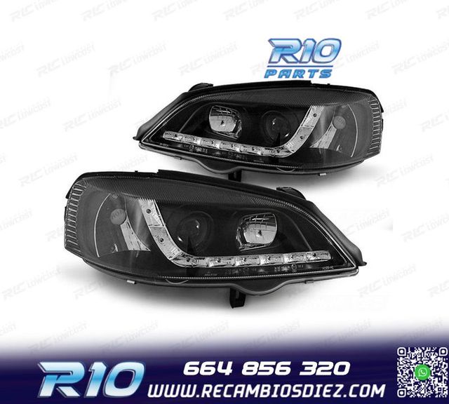 FAROS OPEL ASTRA G 94-97 LUZ DIURNA LED FONDO NEGRO DIURNA