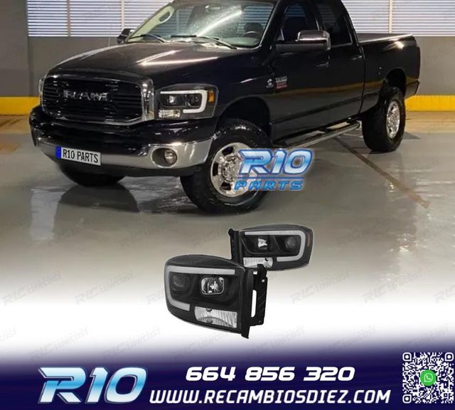 FAROS PARA DODGE RAM 06-08 LUZ DIURNA LED NEGRO