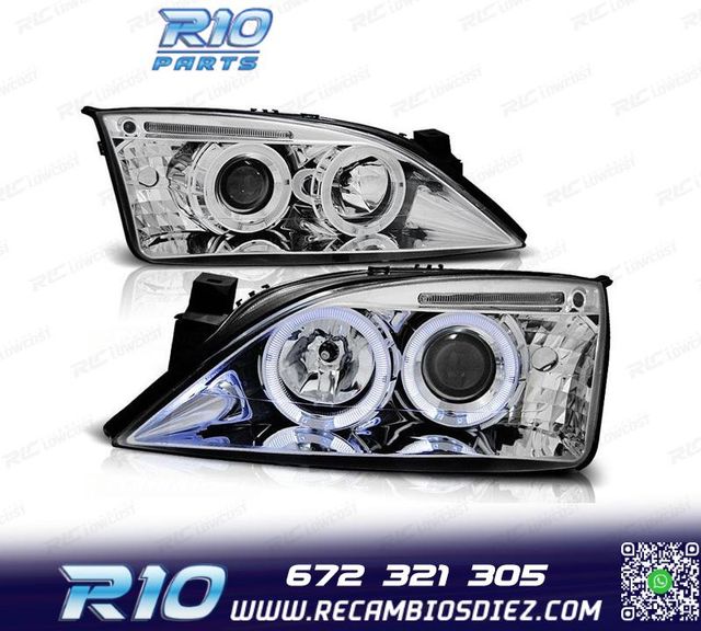 FAROS PARA FORD MONDEO MK3 00-07 OJOS ANGEL FONDO CROMO