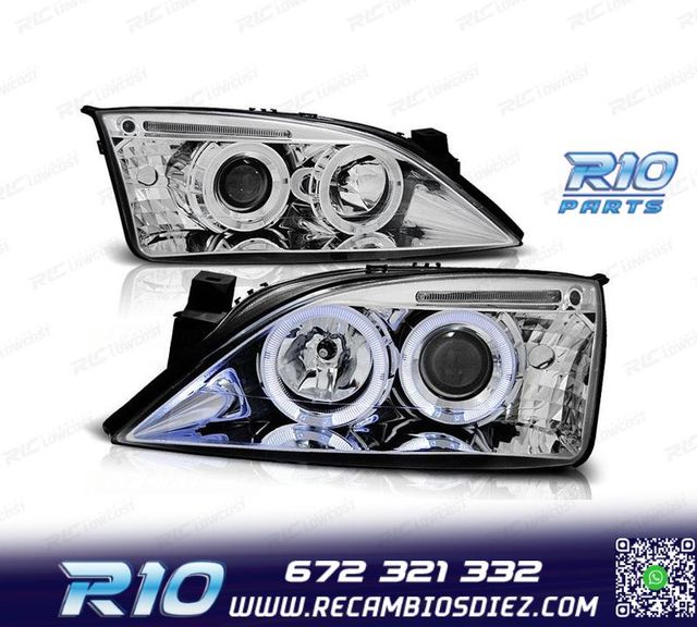 FAROS PARA FORD MONDEO MK3 00-07 OJOS ANGEL FONDO CROMO
