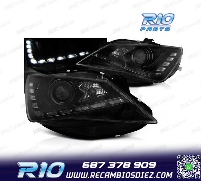 FAROS PARA SEAT IBIZA 6J 12-15 LUZ DIURNA LED FONDO NEGRO