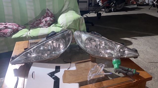 Par de faros delanteros para Peugeot 206. Piezas de repuesto para tu vehículo. - Incluye dos unidades (izquierdo y derecho). - Diseño transparente con detalles cromados.