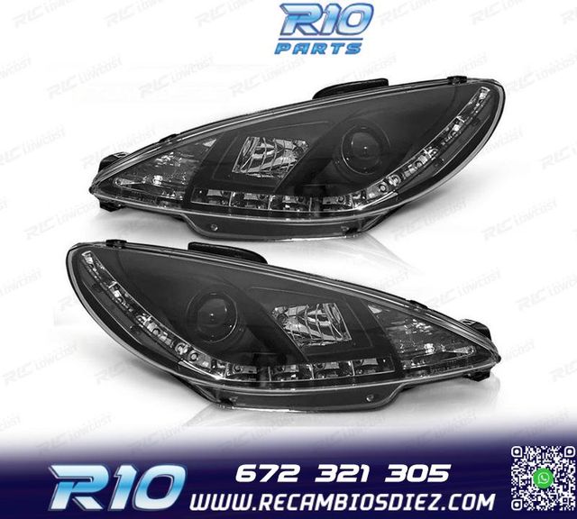 FAROS PEUGEOT 206 98-08 LUZ DIURNA REAL LED FONDO NEGRO