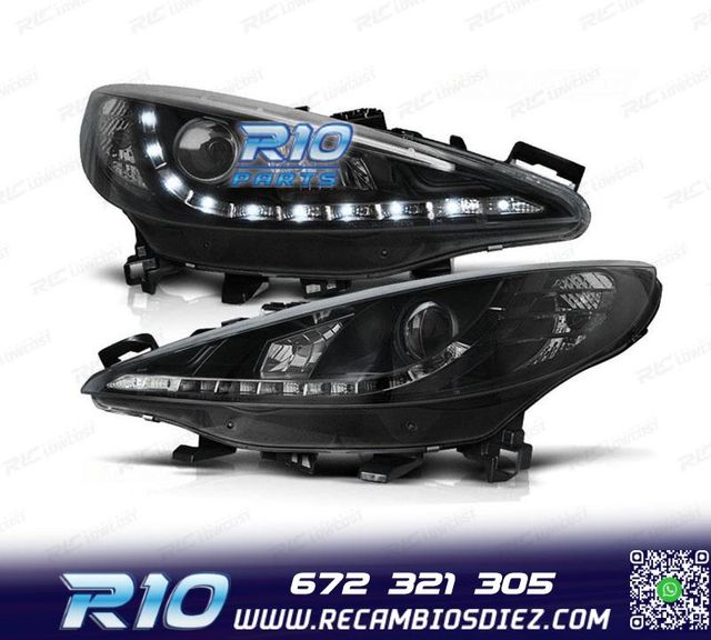 FAROS PEUGEOT 207 06-12 LUZ DIURNA LED FONDO NEGRO