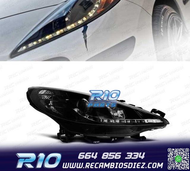 FAROS PEUGEOT 207 06-12 LUZ DIURNA LED NEGRO + MOTOR