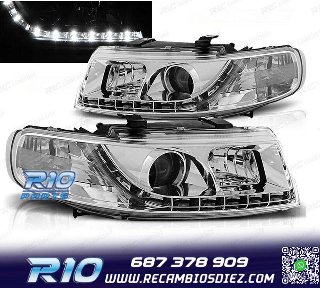 FAROS SEAT LEON TOLEDO 1M 99-05 LUZ DIURNA FONDO CROMO