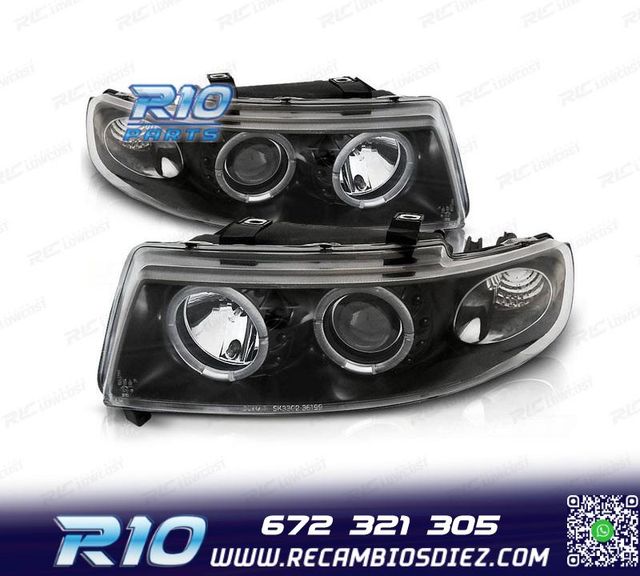 FAROS SEAT LEON TOLEDO 1M OJOS ANGEL 99-05 FONDO NEGRO LED