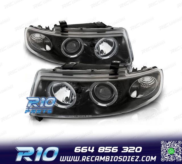 FAROS SEAT LEON TOLEDO 1M OJOS ANGEL 99-05 FONDO NEGRO LED