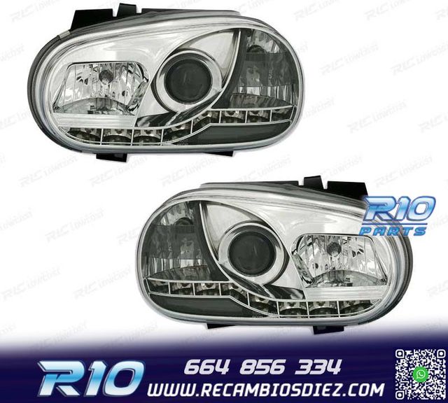 FAROS VOLKSWAGEN VW GOLF 4 LUZ DIURNA LED FONDO CROMO