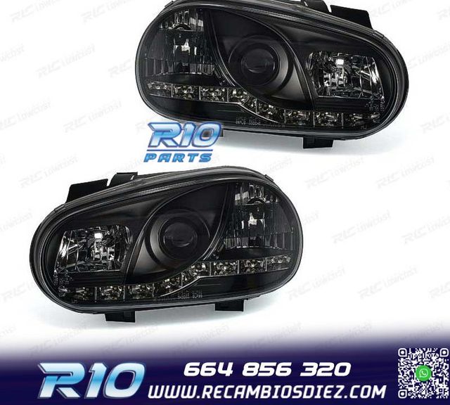 FAROS VOLKSWAGEN VW GOLF 4 LUZ DIURNA LED FONDO NEGRO