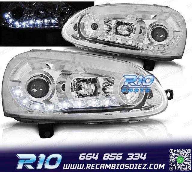 FAROS VOLKSWAGEN VW GOLF MK5 03-08 LUZ DIURNA LED FONDO CROM