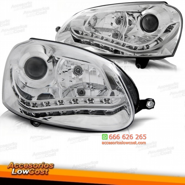 FAROS VW GOLF MK5 03-08 LUZ DIURNA LED FONDO CROM