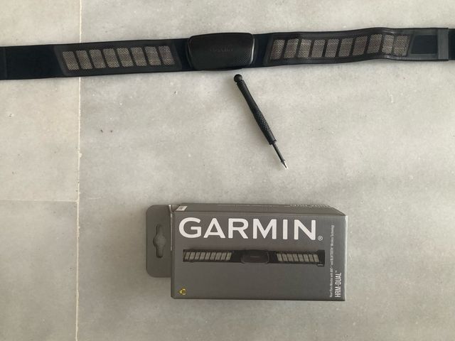 Fascia torácica Garmin HRM Dual para monitorización de ritmo cardíaco. - Compatible con ANT+ y Bluetooth. - Banda textil ajustable.